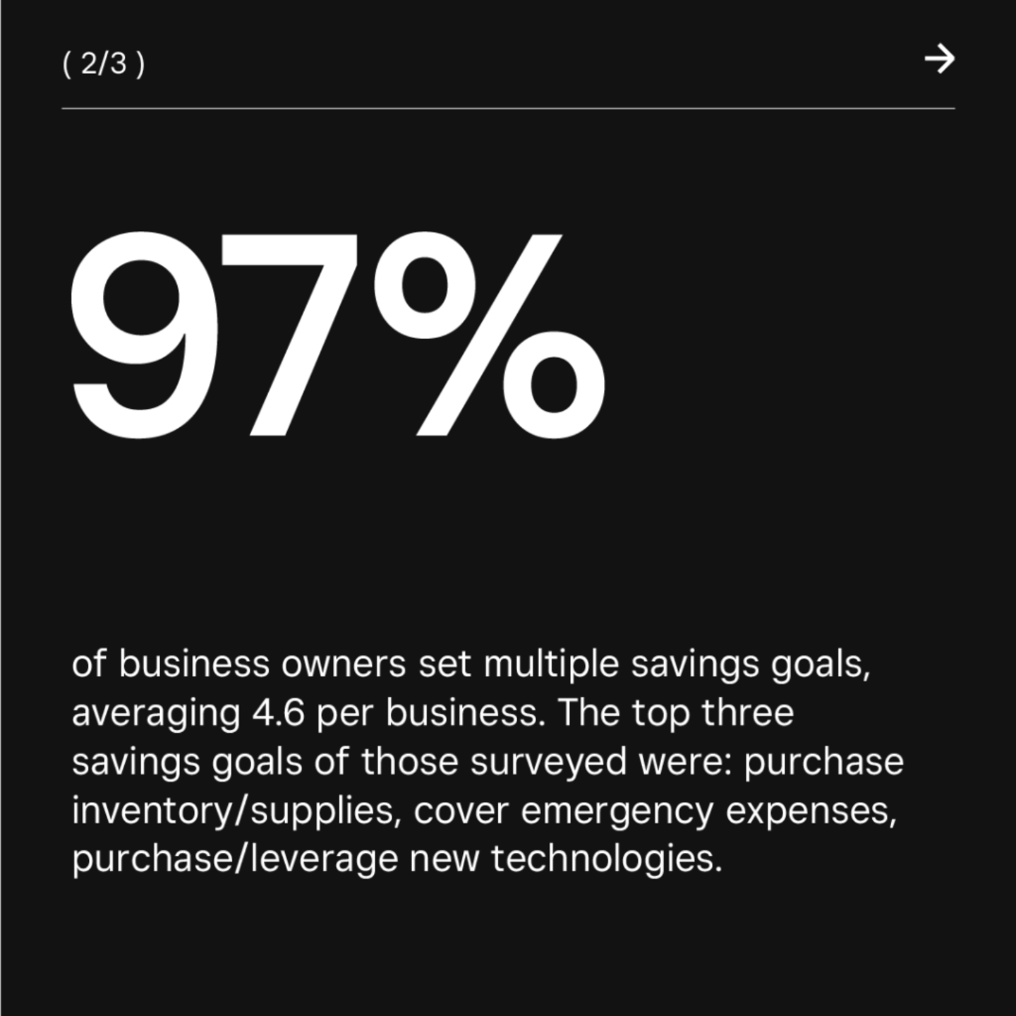 Financially resilient businesses prioritize savings regardless of revenue fluctuations. Even the best-performing businesses see ups and downs on occasion. That's why 97% of surveyed businesses have savings goals, which is a wise decision. These businesses allocate an average of 10% of their annual revenue to savings.