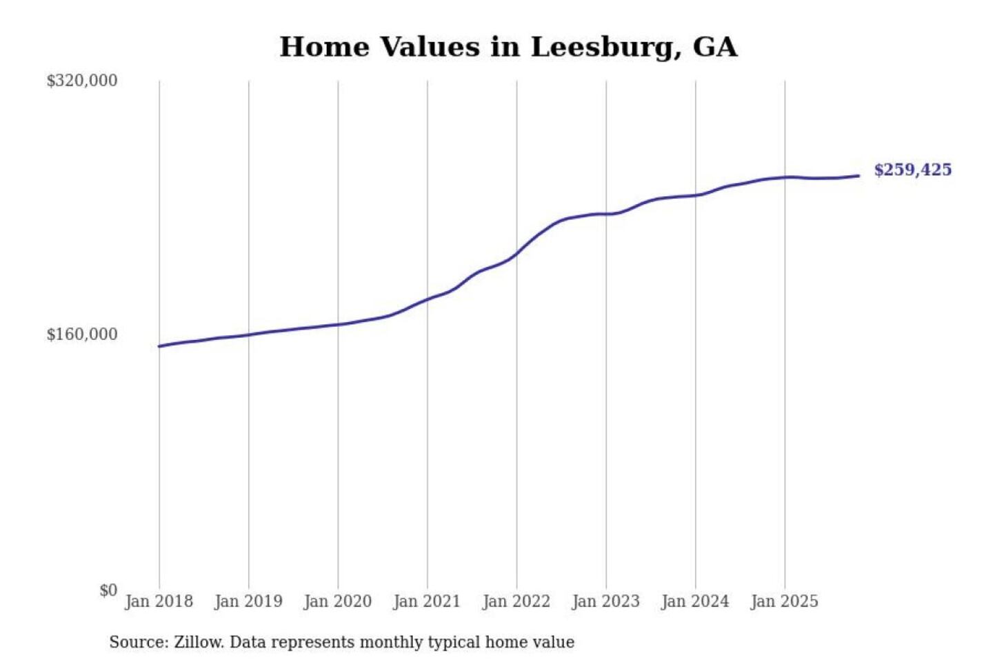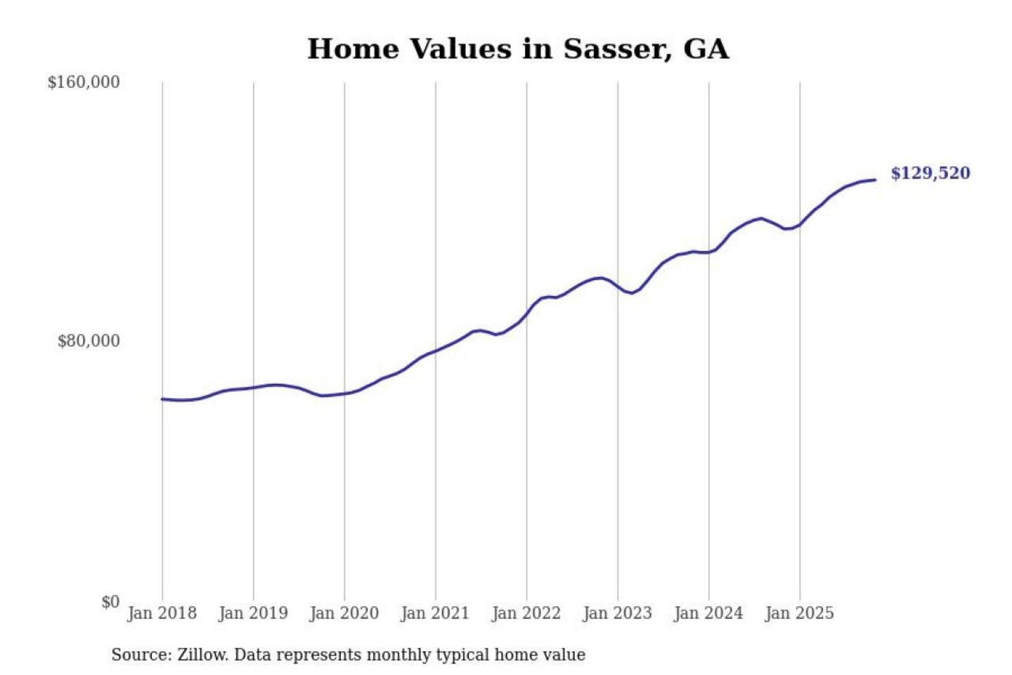 Stacker compiled a list of cities with the most expensive homes in the Albany, GA metro area using data from Zillow. Charts show the monthly typical home value since January 2018.