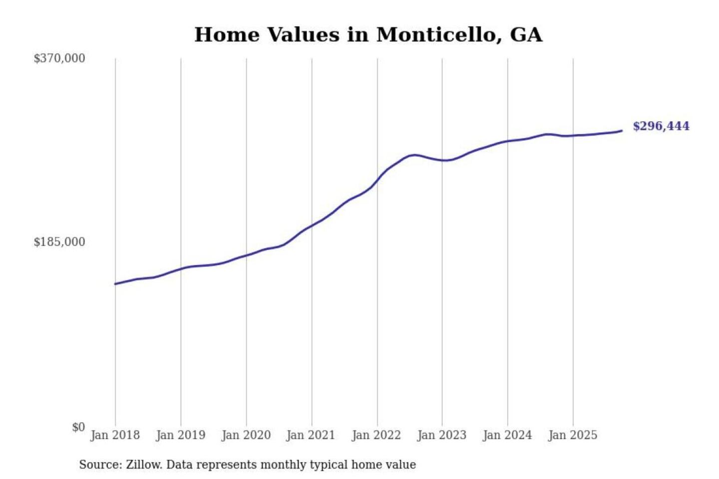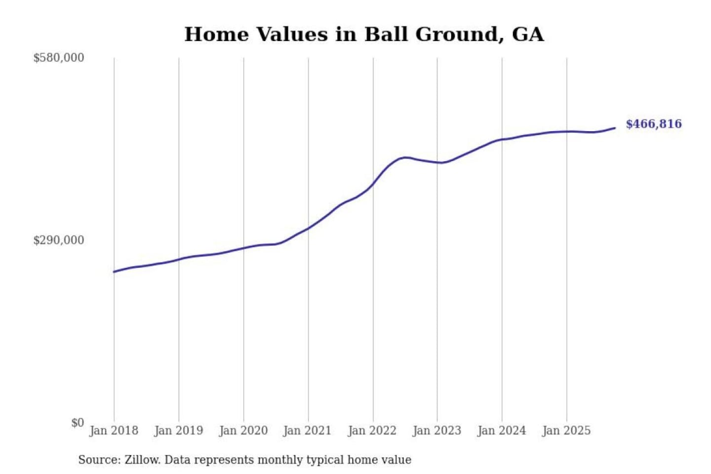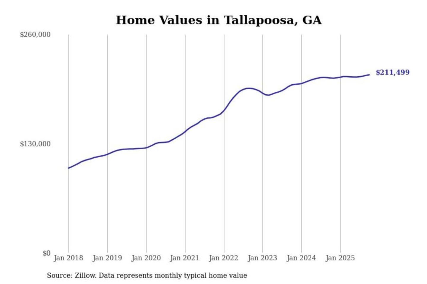 Stacker compiled a list of cities with the most expensive homes in the Atlanta-Sandy Springs-Alpharetta, GA metro area using data from Zillow. Charts show the monthly typical home value since January 2018.