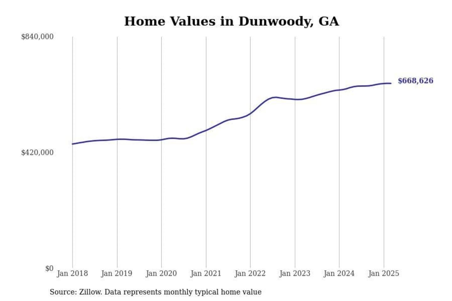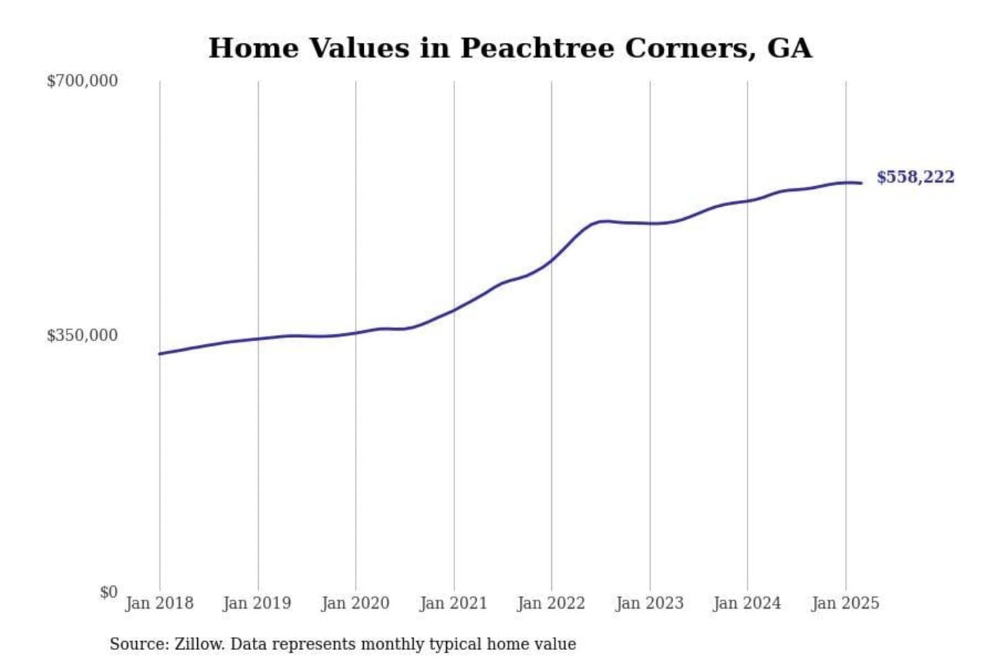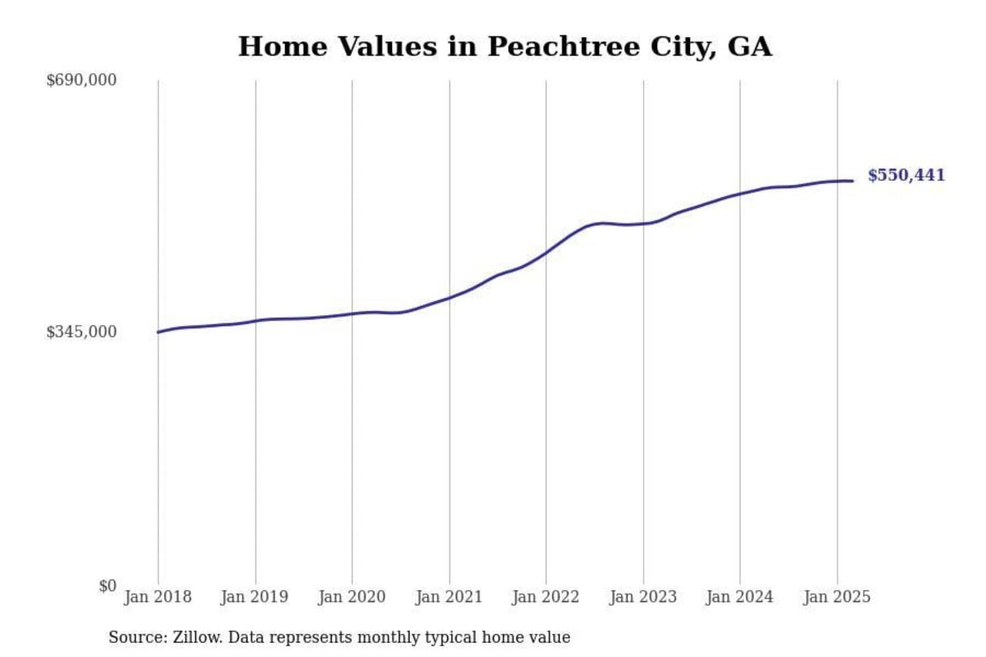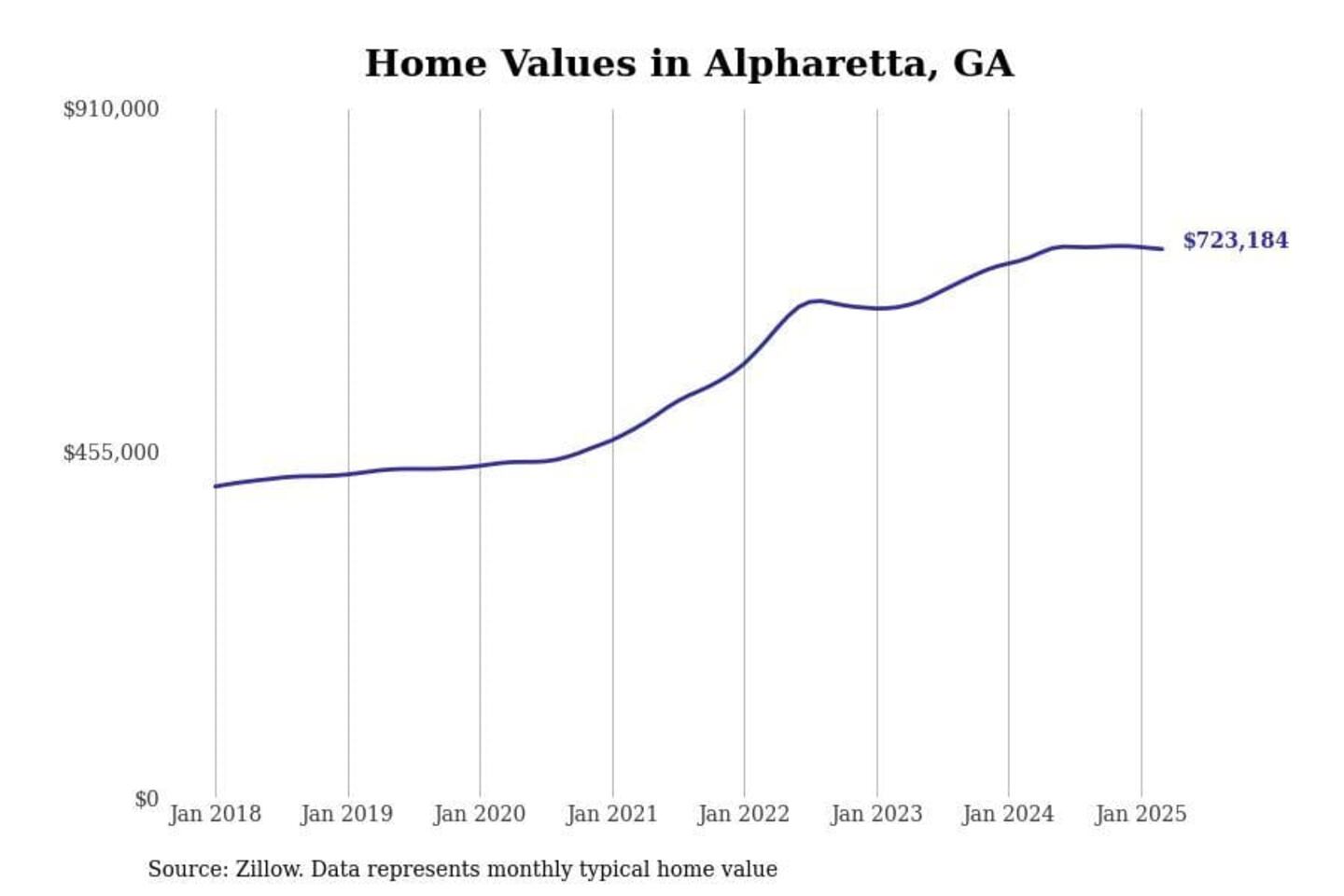 Stacker compiled a list of cities with the most expensive homes in the Atlanta-Sandy Springs-Alpharetta, GA metro area using data from Zillow. Charts show the monthly typical home value since January 2018.