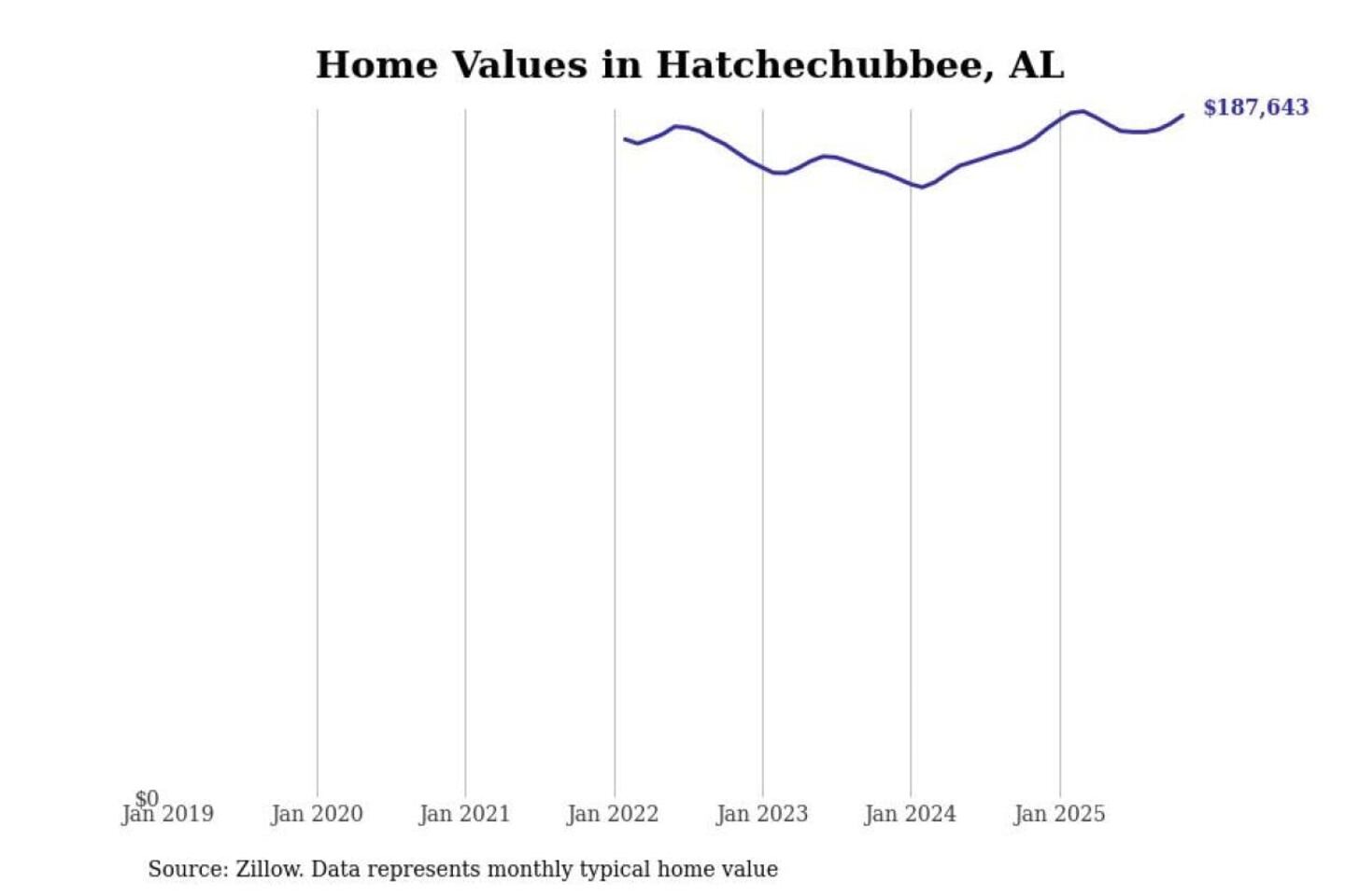 Stacker compiled a list of cities with the most expensive homes in the Columbus, GA-AL metro area using data from Zillow. Charts show the monthly typical home value since January 2018.