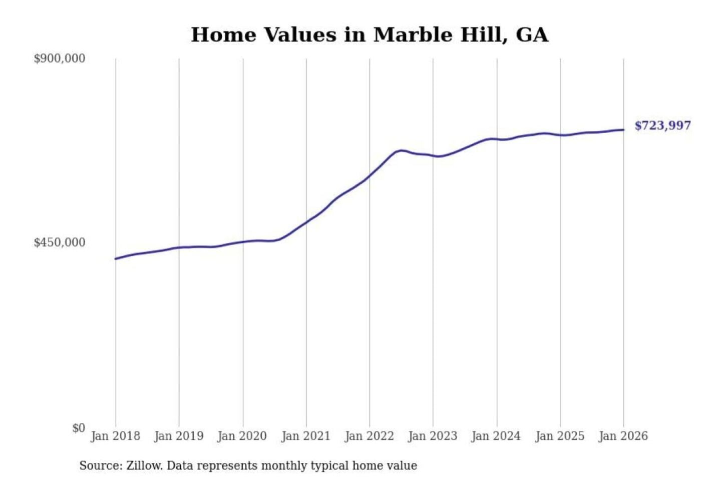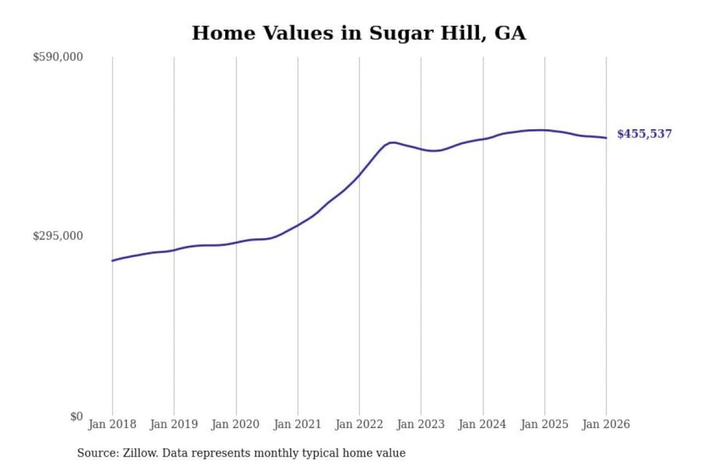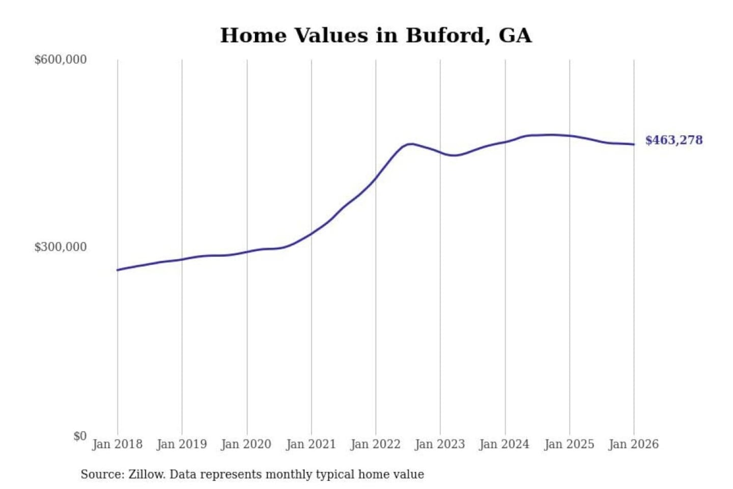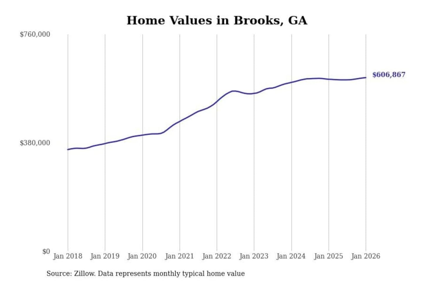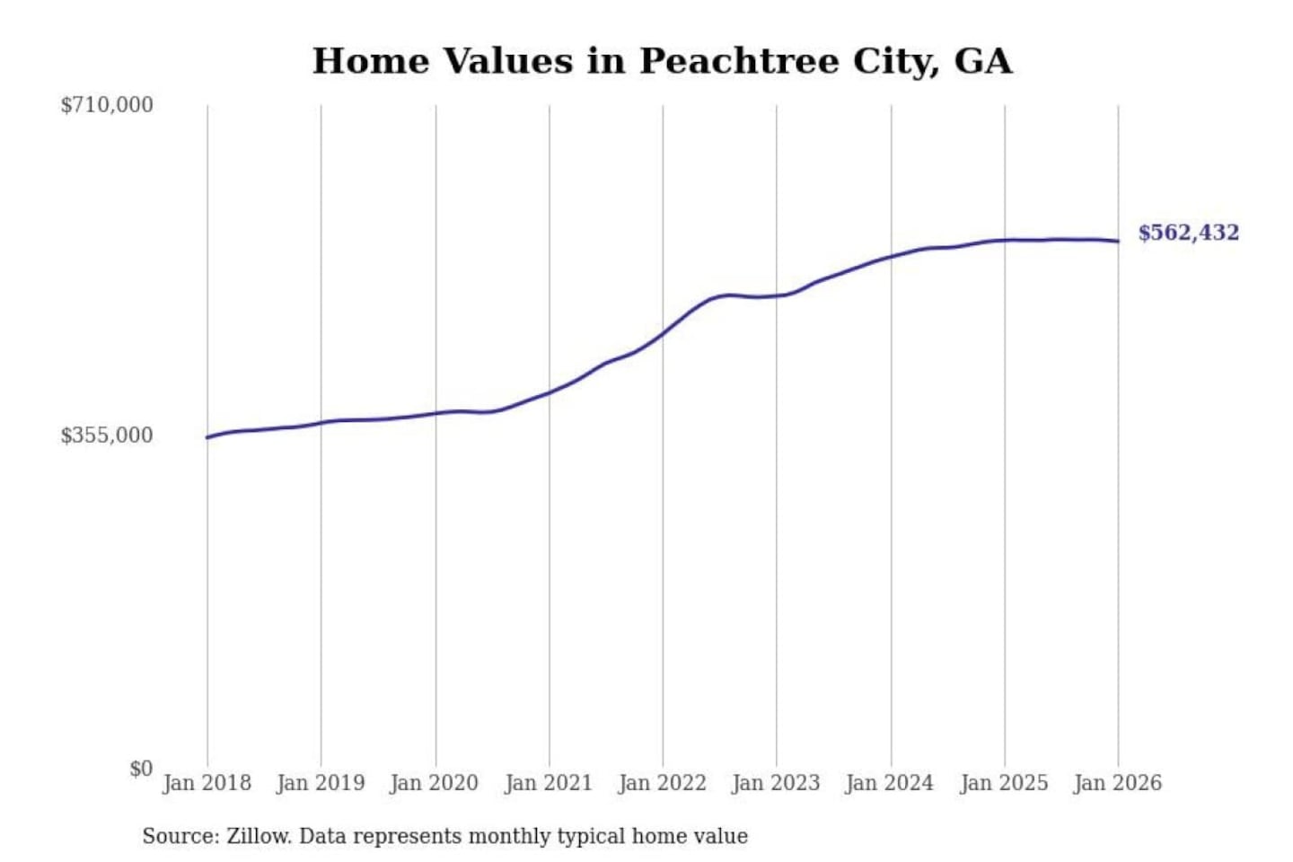 Stacker compiled a list of cities with the most expensive homes in the Atlanta metro area using data from Zillow. Charts show the monthly typical home value since January 2018. Data was available for 149 cities and towns.