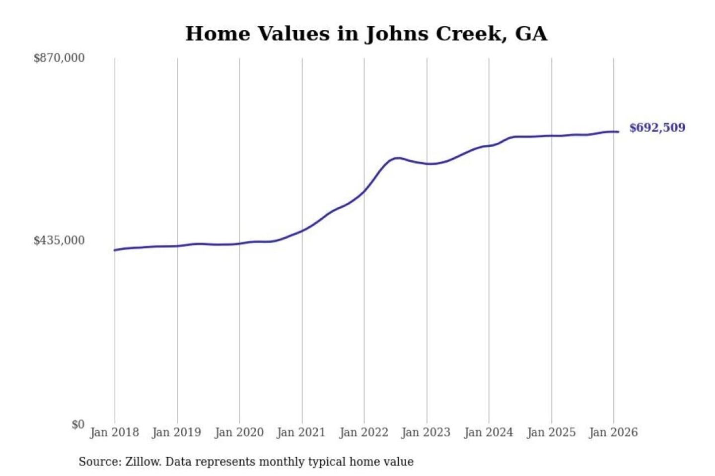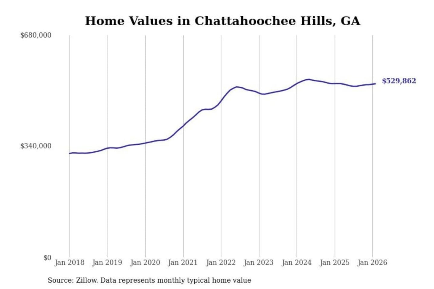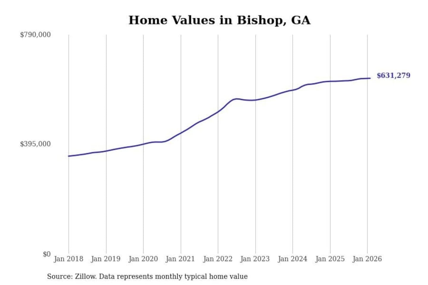 Stacker compiled a list of cities with the most expensive homes in Georgia using data from Zillow. Cities are ranked by the Zillow Home Values Index for all homes as of February 2026. The charts in this story were created automatically using Matplotlib.