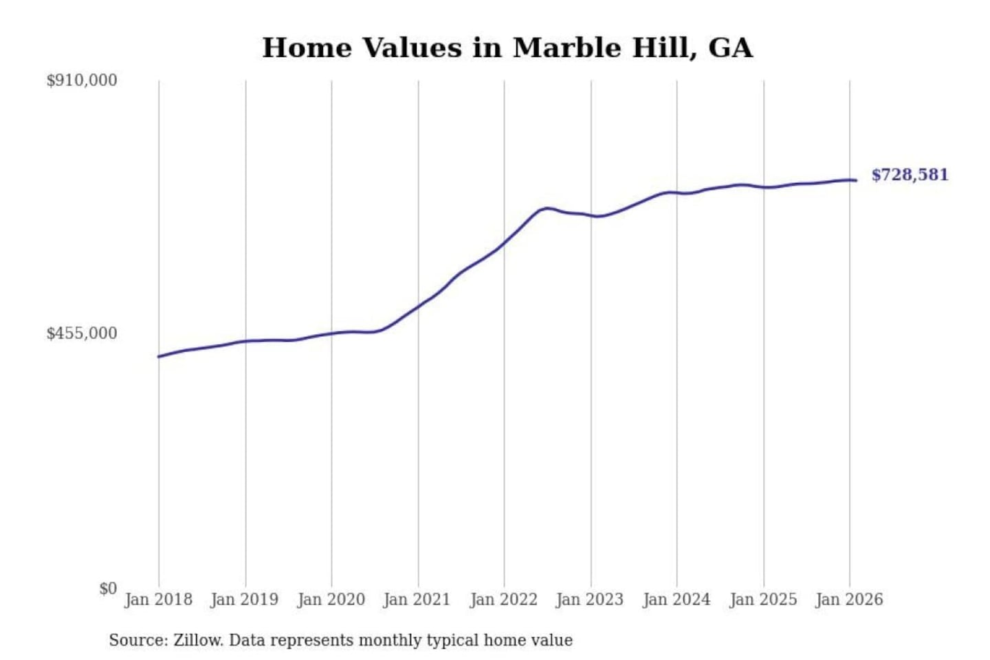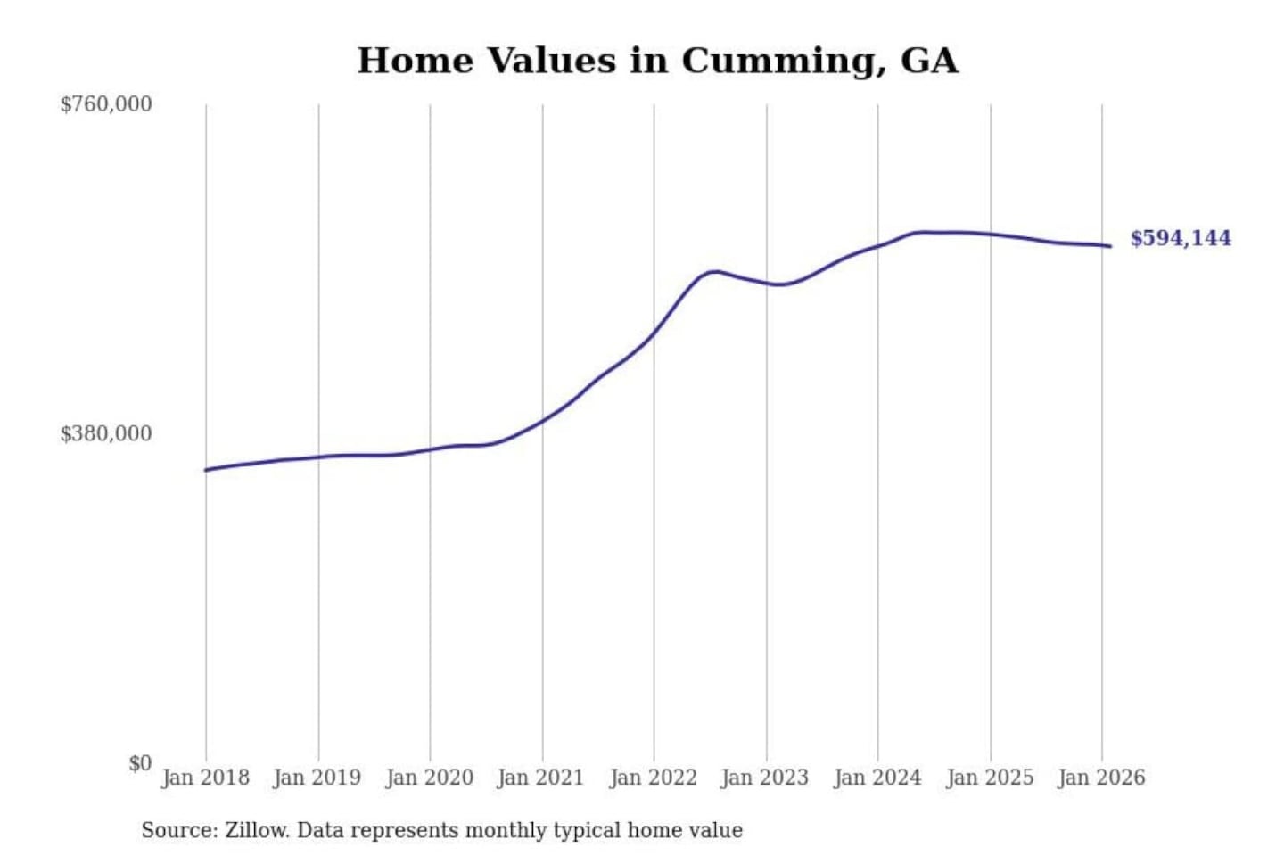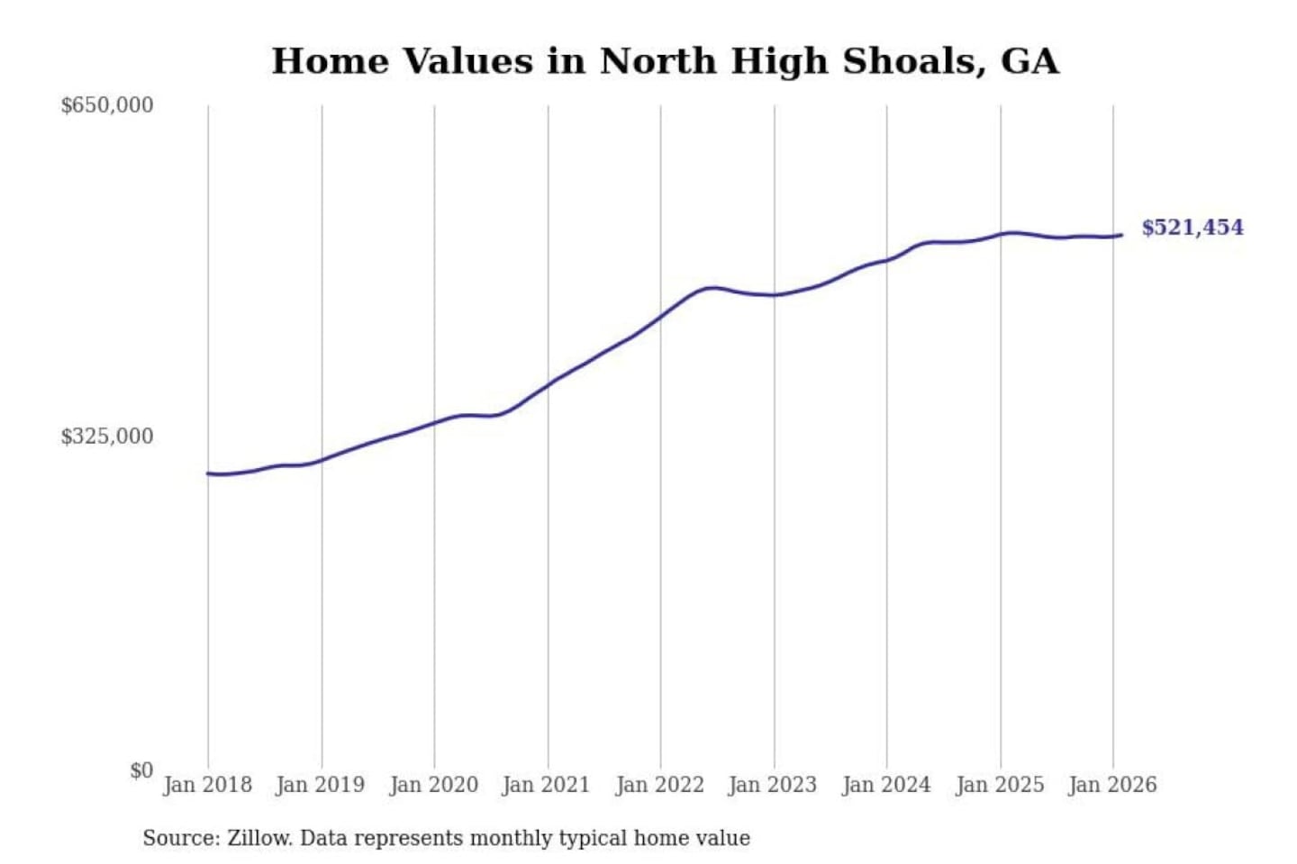 Stacker compiled a list of cities with the most expensive homes in Georgia using data from Zillow. Cities are ranked by the Zillow Home Values Index for all homes as of February 2026. The charts in this story were created automatically using Matplotlib.