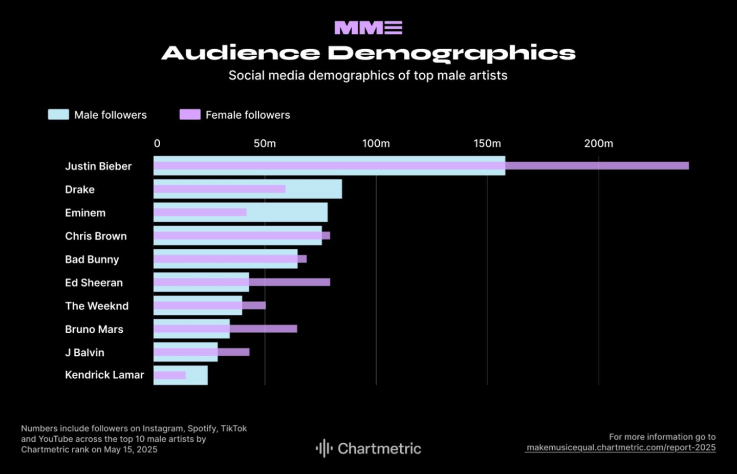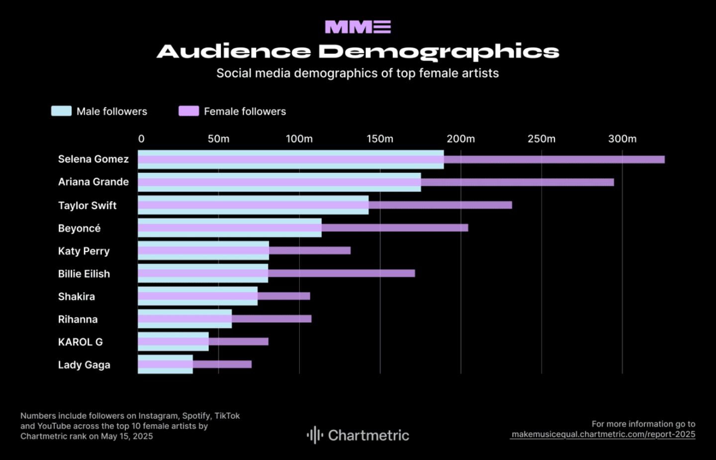 10. Social audience: Numbers include followers on Instagram, Spotify, TikTok and YouTube as of May 15, 2025.