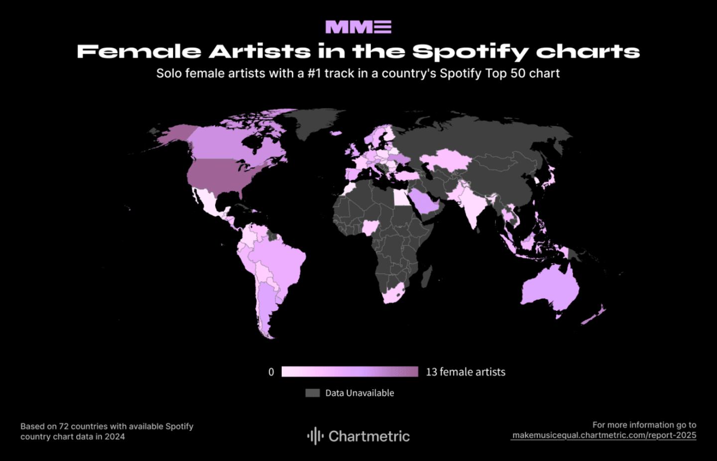 9. Top Charts: Only 72 countries with available Spotify country charts in 2024 were considered.