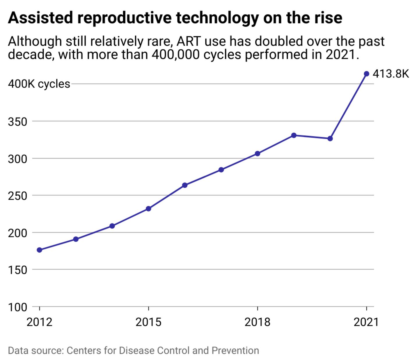 Natalie is one of the millions grappling with infertility in the U.S. who have turned to IVF to become parents. Over the past 10 years, assisted reproductive technologies like IVF have doubled, giving a boost to the country's falling fertility rates. In 2022 alone, nearly 100,000 babies were born with the help of IVF. In 2018, the International Committee for Monitoring ART estimated that 8 million babies have been born as a result of IVF since 1978.