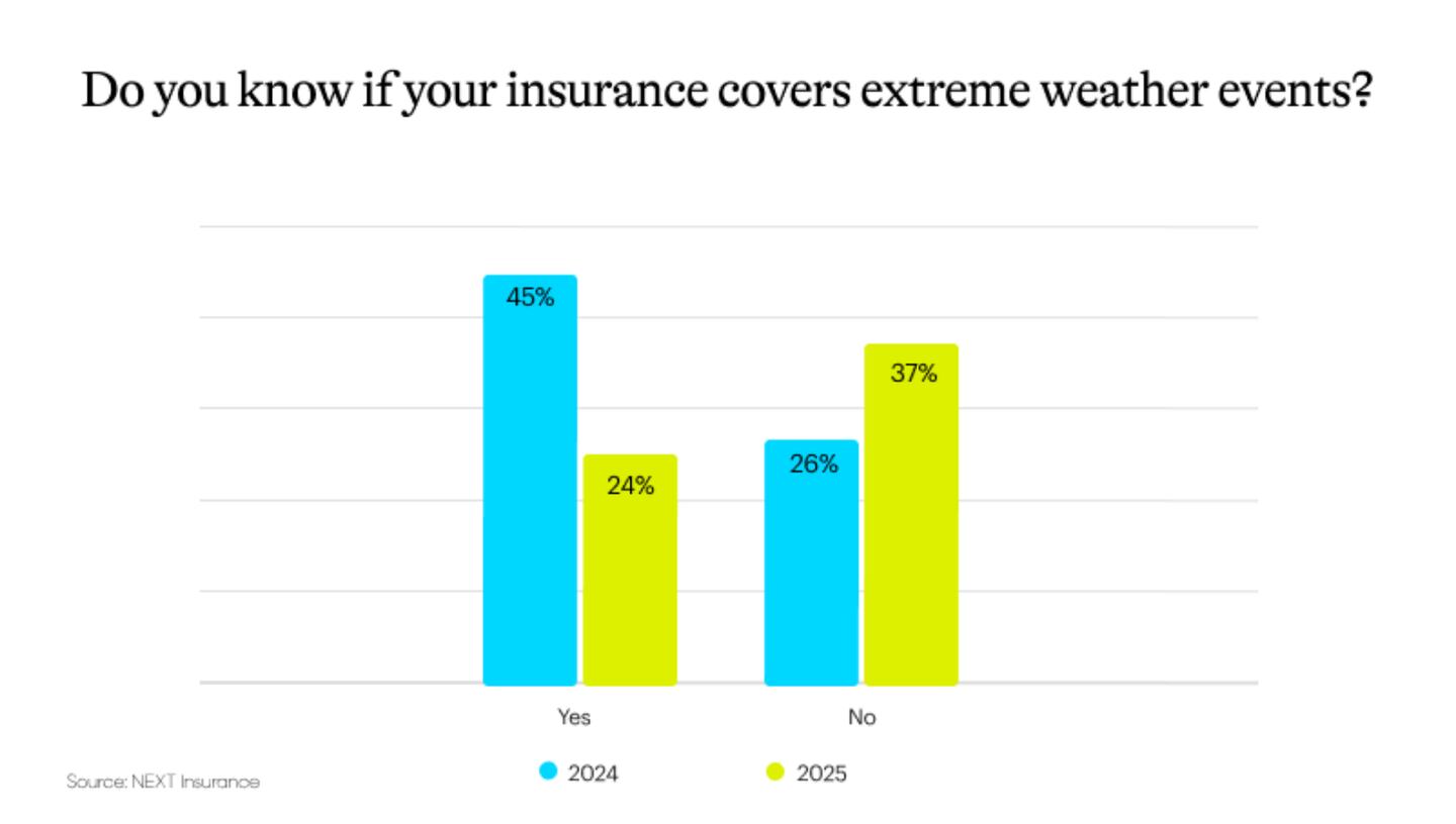 In 2025, 37% of respondents feel uncertain about the weather damage their policy covers — up from 26% of respondents last year.