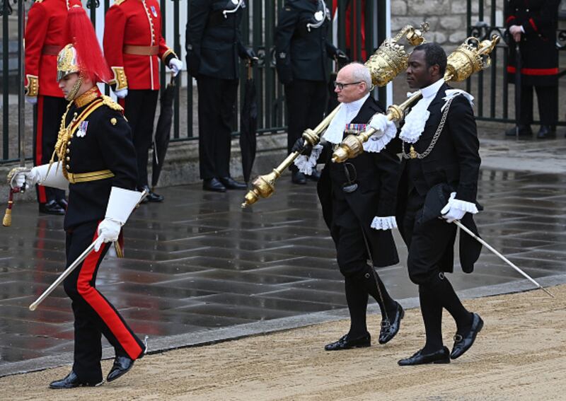 Update 5:18 a.m. EDT, May 6: Faith leaders, including those of non-Protestant faiths, were the first to enter Westminster Abbey, followed by representatives from the countries and territories over which King Charles III rules, CNN reported. The flags of the nations will accompany governors-general and prime ministers.