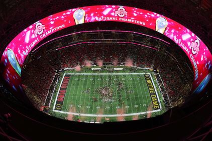 2025 CFP National Championship Presented by AT&T- Ohio State v Notre Dame ATLANTA, GEORGIA - JANUARY 20: Ohio State Buckeyes fans are seen during the second half against the Notre Dame Fighting Irish in the 2025 CFP National Championship at the Mercedes-Benz Stadium on January 20, 2025 in Atlanta, Georgia. (Photo by Kevin C. Cox/Getty Images) (Kevin C. Cox/Getty Images)