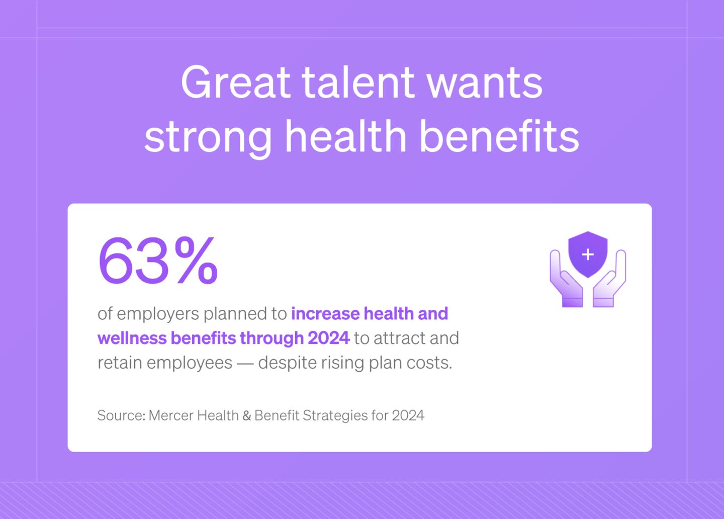 • A strong benefits package helps companies attract top talent and increases employee retention, engagement, and job satisfaction.