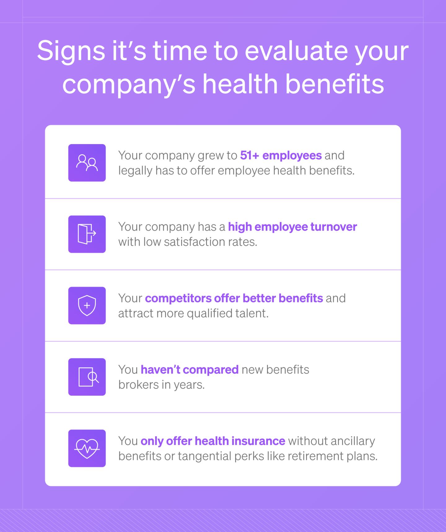 Under the Affordable Care Act, or ACA,, companies with a staff of fewer than 50 have no legal requirement to offer health insurance benefits for employees, but providing such benefits is a key way to attract talent. It's most helpful to consider: